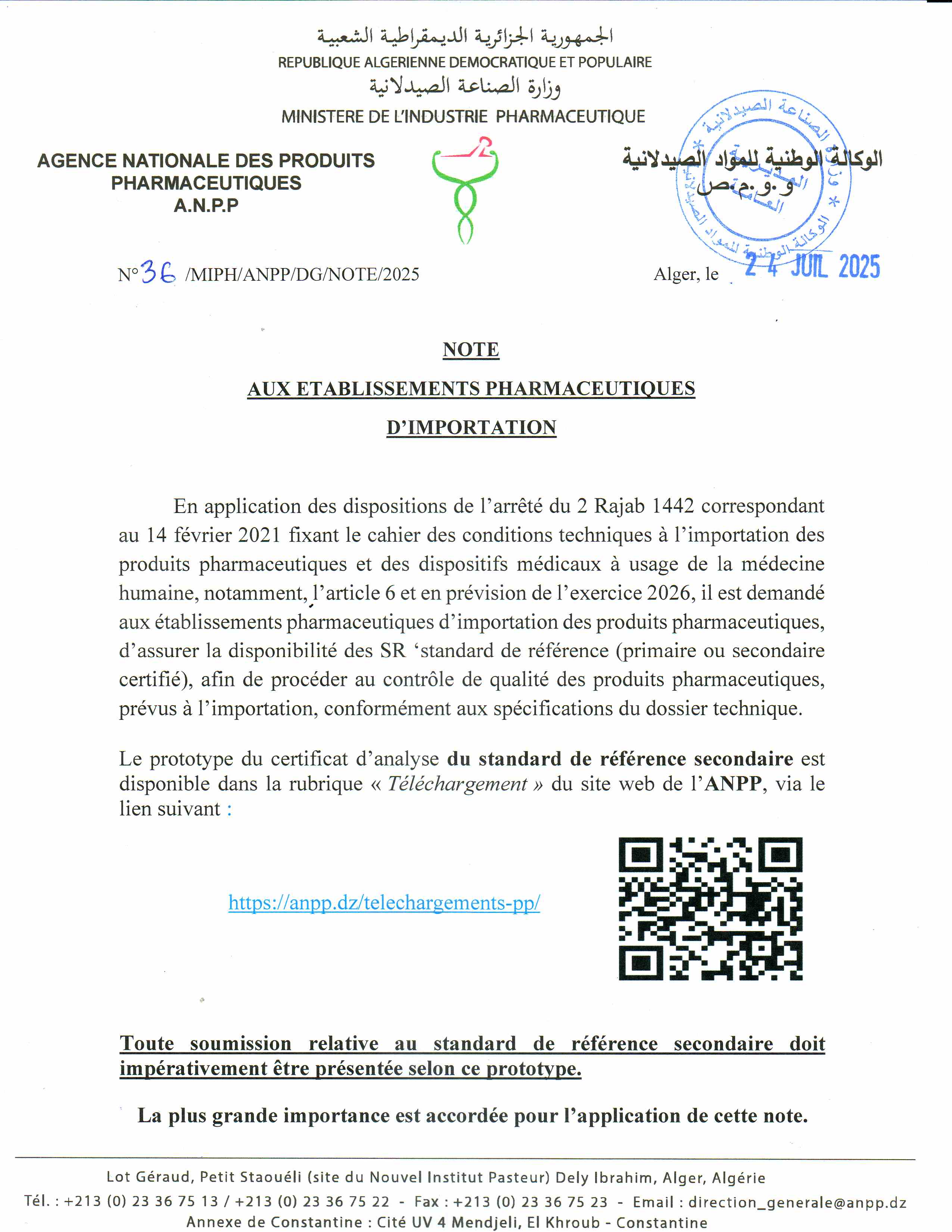 Note N°37-2025 Relative aux Dispositifs médicaux importés non homologués01-09-2025 TéléchargerAperçu